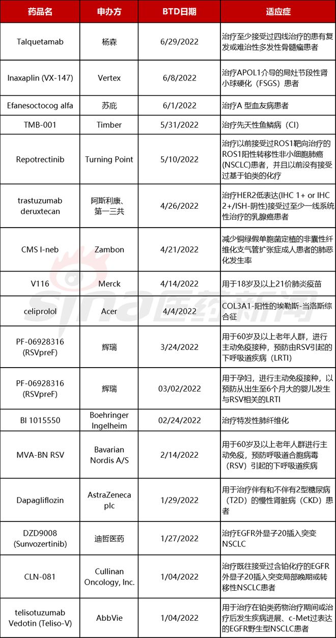 FDA 进一步解释:“如果一项旨在明确显示指定药物效果的 III期试验未能达到其主要终点,或者受益程度较为适中,以至于该试验并未表明该药物可能证明比现有疗法有显着改善。改变BTD药物获益风险评估的安全信息的出现也可能支持撤销 BTD 的决定。”
