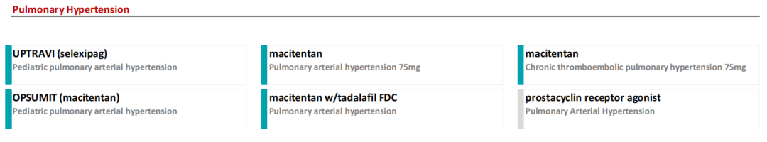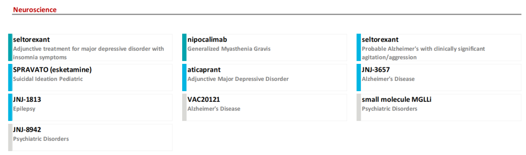 强生还在神经科学、肺动脉高压等领域也有布局,具体产品见下表。