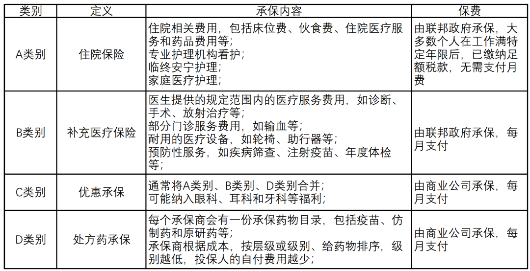 ▲Medicare 有A-D共4个类别。/医学界智库