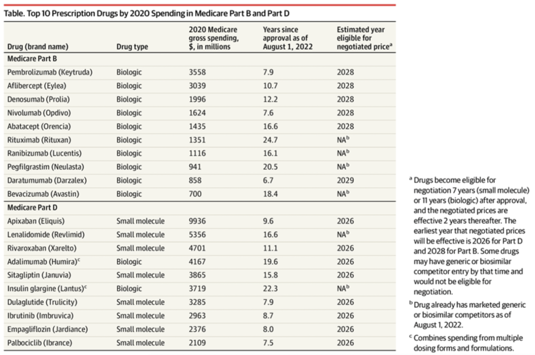 ▲Medicare B和D部分销量靠前品种,来自美国医学会杂志JAMA