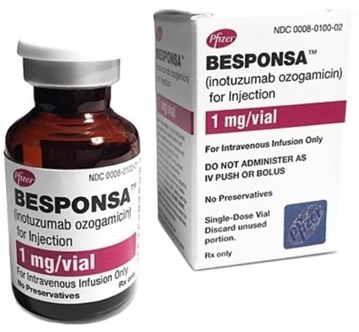Besponsa是一种靶向CD22的抗体药物偶联物,由Inotuzumab(伊珠单抗),通过可切割连接子,与ozogamicin(卡奇霉素)偶联而成。