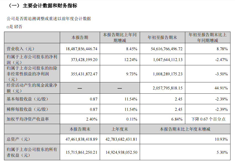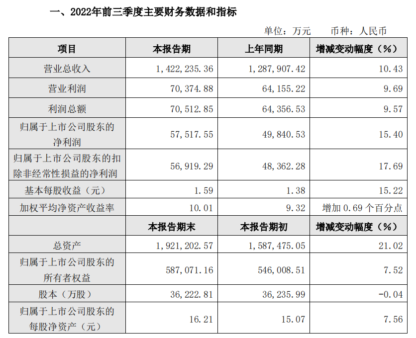 国药一致表示,正积极采取多种举措减少上述因素对经营业绩的影响,并在2022年第三季度取得较为显著的成效。2022年第三季度,公司实现归属上市公司股东净利润3.73亿元,同比增长12.24%,基本每股收益也相应上升11.54%,加权平均净资产收益率上升0.11个百分点。