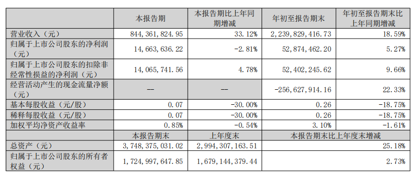 达嘉维康:Q3营收8.44亿元,同增33.12%