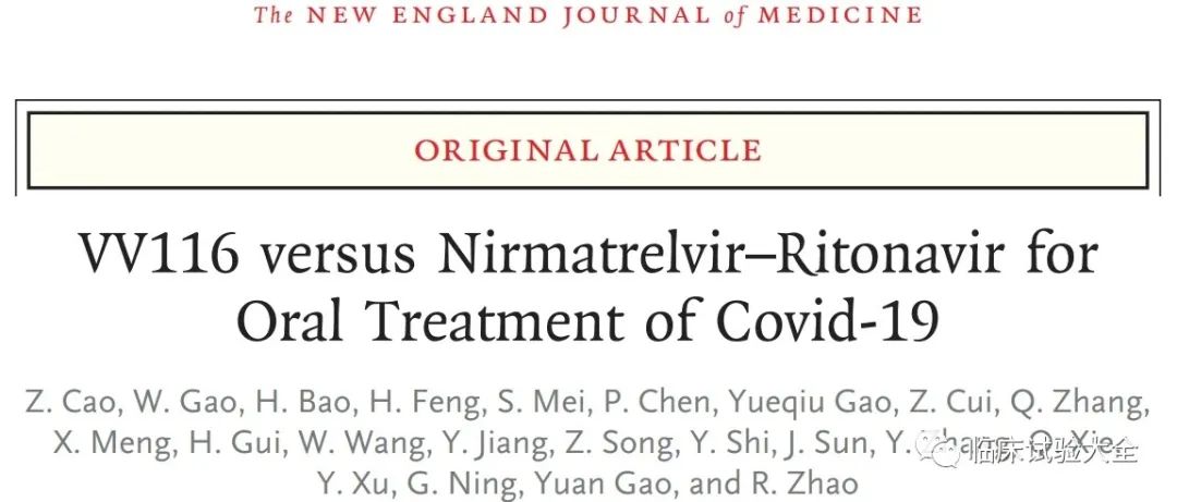 北京时间12月29日清晨,《新英格兰医学杂志》(NEJM)发表一项中国非劣效性3期随机对照临床试验,其结果表明,对于有高危因素的轻中度Covid-19成人患者,在至持续临床康复时间方面,国产VV116非劣于Paxlovid(4天 vs. 5天;风险比,1.17;95%置信区间,1.02~1.36),且不良事件更少。