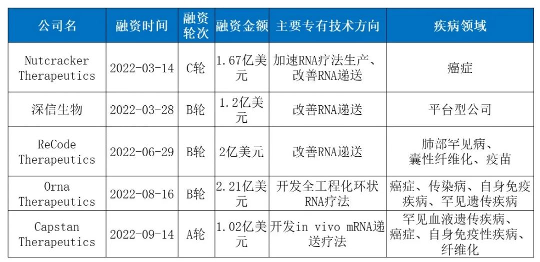 ▲2022年1月至今,获得大型融资(超1亿美元)的mRNA疗法领域公司(来自药明康德内容部数据库,药明康德内容团队整理)