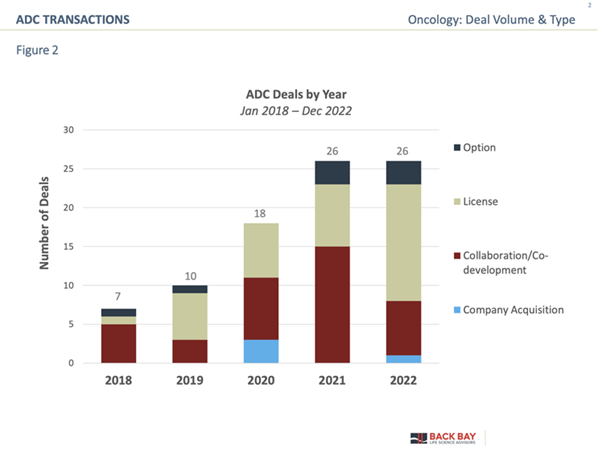 按照不完全统计,ADC领域的交易自2018年以来增加了三倍多,截至2022年底,投资总额约为18亿美元。