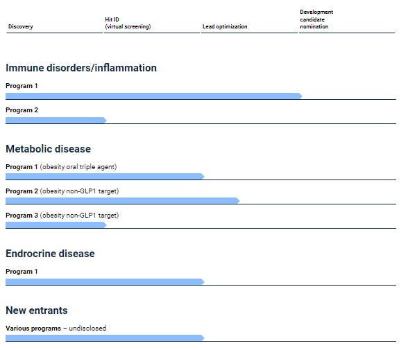 根据新闻稿,凭借其结合冷冻电镜、深度学习和超大型分子对接筛选文库的强大发现引擎,Deep Apple可以在不到12个月的时间内——仅占行业标准时间的一小部分——完成从靶标识别到先导物优化,并能靶向通过传统发现方法无法触及的生物靶标信号。Deep Apple的发现引擎适用于广泛疾病领域,尤其适合针对完整膜蛋白的加速发现。该公司目前正在推进多个项目,开发重点是GPCR调节剂,应用于代谢紊乱、炎症、免疫学和内分泌疾病。