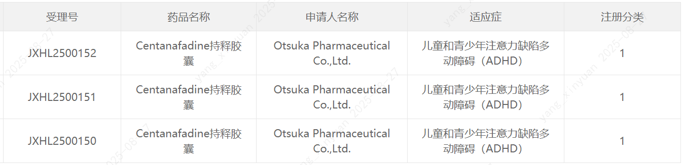 根据大冢制药官网,该产品正在美国和日本开展3期临床研究,针对ADHD适应症。