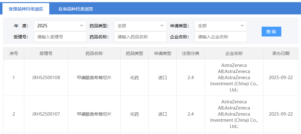 9 月 22 日,CDE 官网显示,阿斯利康奥希替尼新适应症国内申报上市。根据公开资料和临床试验进展,Insight 数据库推测适应症可能为:单药或联合化疗用于新辅助治疗可切除的表皮生长因子受体突变阳性非小细胞肺癌(NSCLC)。