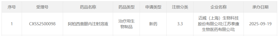 9 月 19 日,CDE 官网显示,迈威生物的阿柏西普眼内注射溶液申报上市。根据 Insight 数据库,这是第三款报产的国产阿柏西普生物类似药。