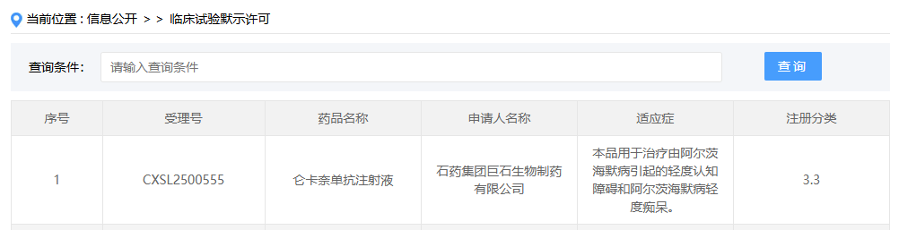 9 月 24 日,石药集团仑卡奈单抗注射液获批临床,用于治疗由阿尔茨海默病(AD)引起的轻度认知障碍和阿尔茨海默病轻度痴呆,注册分类为 3.3 类。公开资料显示,这是该药首次获批临床。