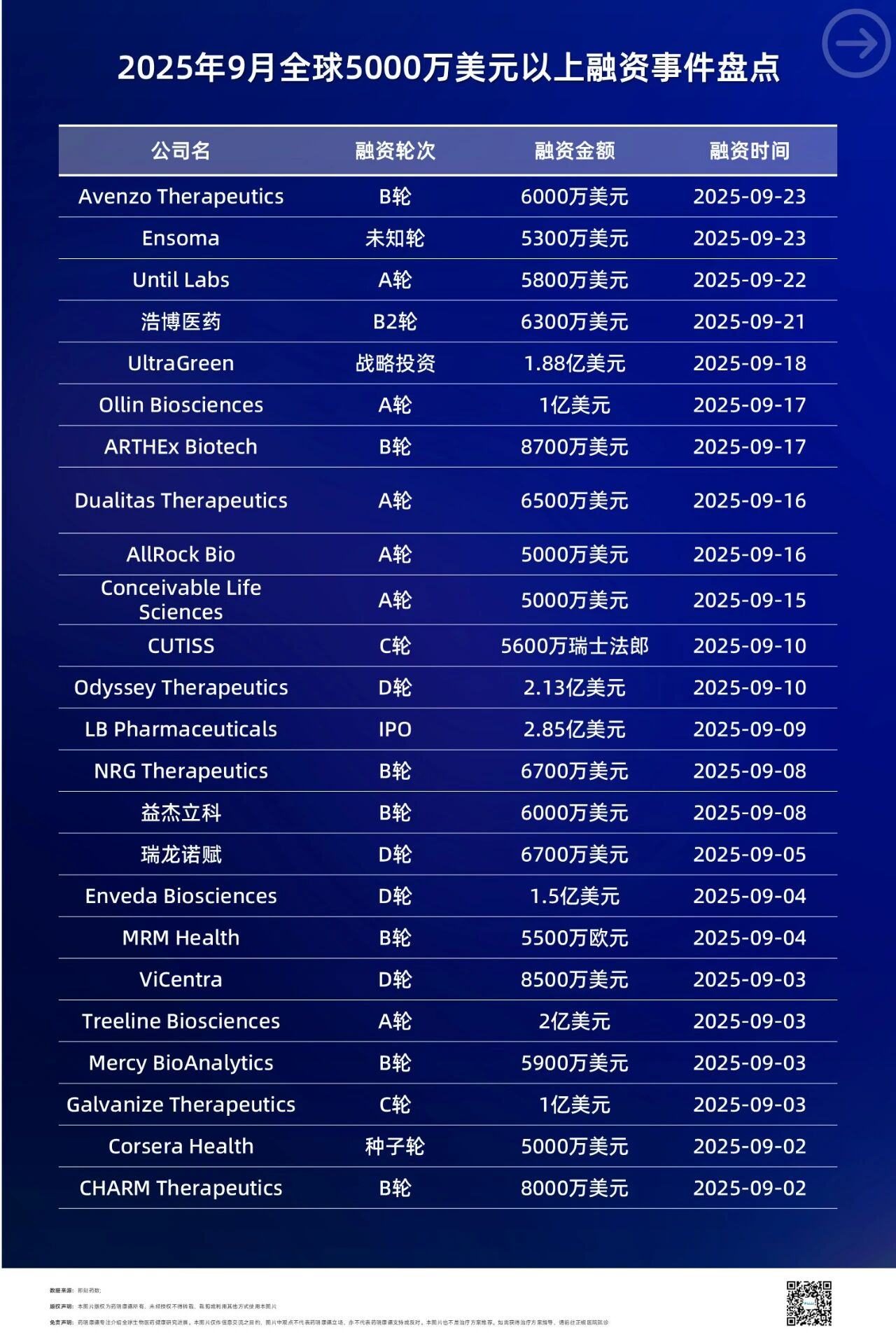 限于篇幅,本文无法对所有公司进行介绍,如需获取完整信息,请参阅《2025年9月全球5000万美元以上融资事件盘点》(详见下图)。