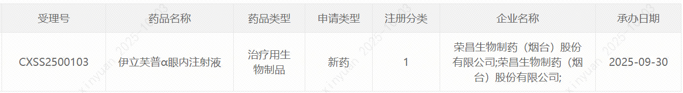 近日,参天制药株式会社(简称"参天制药")与荣昌生物共同宣布,针对眼部新生血管性疾病的VEGF/FGF双靶标融合蛋白RC28-E玻璃体腔注射液(伊立芙普α眼内注射液),用于治疗糖尿病性黄斑水肿(DME)的新药上市申请,正式获得中国国家药品监督管理局药品审评中心(CDE)受理。