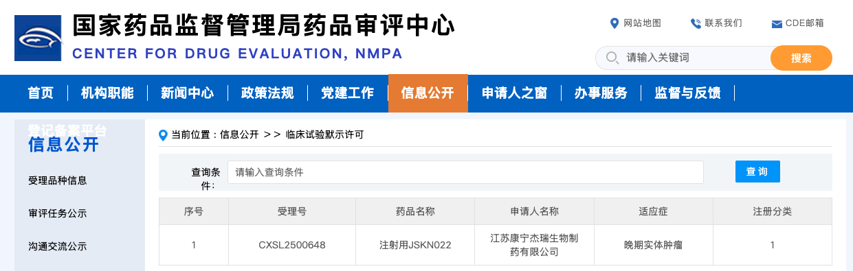 10 月 11 日,CDE 官网显示,康宁杰瑞自主研发的 PD-L1/αvβ6 双特异性抗体偶联药物(ADC)JSKN022 获批临床,用于晚期恶性实体瘤。Insight 数据库显示,这是康宁杰瑞第 4 款进入临床阶段的双抗 ADC。
