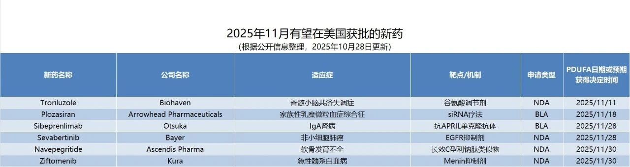 ▲11月美国FDA可能批准的新药(点击可见大图)