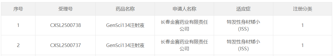 11 月 3 日,CDE 官网显示,金赛药业 GenSci134 注射液获批一项新适应症临床研究,拟开发用于治疗特发性身材矮小。
