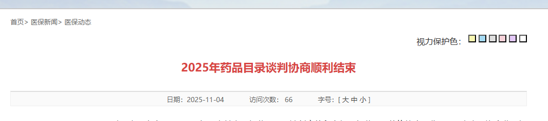 11 月 4 日,国家医疗保障局发布新闻稿,2025 年药品目录谈判协商顺利结束。