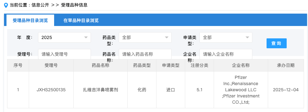 12 月 4 日,CDE 官网显示,辉瑞的扎维吉泮鼻喷雾剂上市申请获受理,用于治疗成人偏头痛。这是全球首个且唯一治疗急性偏头痛的 CGRP(降钙素基因相关肽)受体拮抗剂鼻喷剂型。