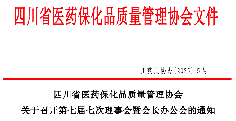 经研究,四川省医药保化品质量管理协会定于2025年12月17日(星期三)召开协会第七届七次理事会暨会长办公会,现将有关事项通知如下: