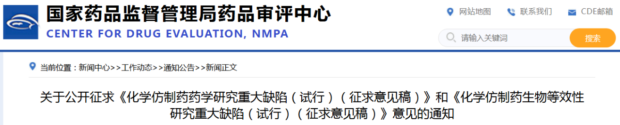 近日,CDE发布《化学仿制药药学研究重大缺陷(试行)(征求意见稿)》和《化学仿制药生物等效性研究重大缺陷(试行)(征求意见稿)》,首次系统明确了可直接驳回而不予发补的重大缺陷清单。