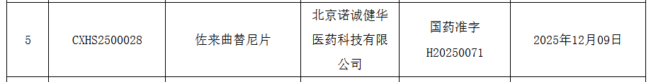 12 月 11 日,NMPA 官网显示,诺诚健华 1 类新药「佐来曲替尼」在国内获批上市,用于治疗携带 NTRK 融合基因的晚期实体瘤成人和青少年(12 周岁 ≤ 年龄 < 18周岁)患者(受理号:CXHS2500028)。
