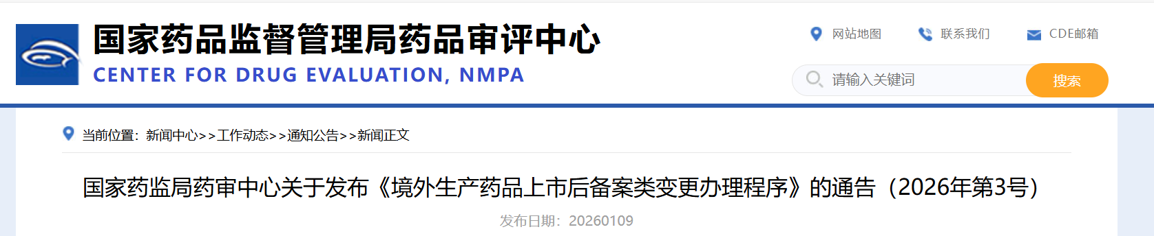 2026年1月9日,CDE发布的《境外生产药品上市后备案类变更办理程序》,自发布之日起施行。