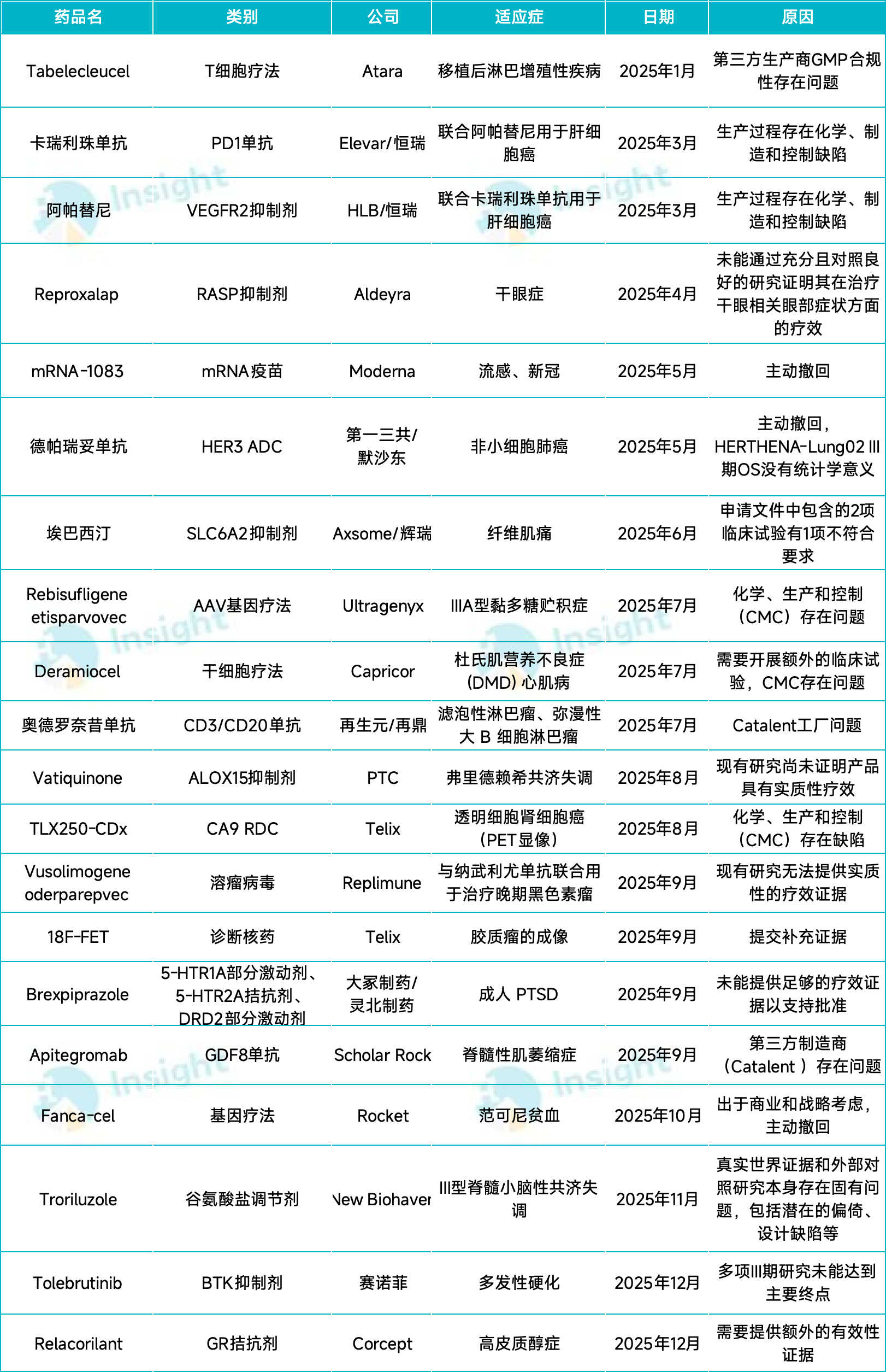 2025 年 FDA 拒批的新药