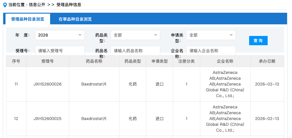 2 月 13 日,CDE 官网显示,阿斯利康 Baxdrostat 片上市申请获受理。根据临床试验进展,Insight 数据库推测适应症为高血压。