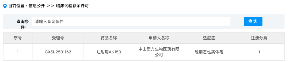 3 月 9 日,CDE 官网显示,康方生物注射用 AK150 首次获批临床,用于治疗晚期实体瘤。AK150 是康方生物首款获批临床的三抗产品。