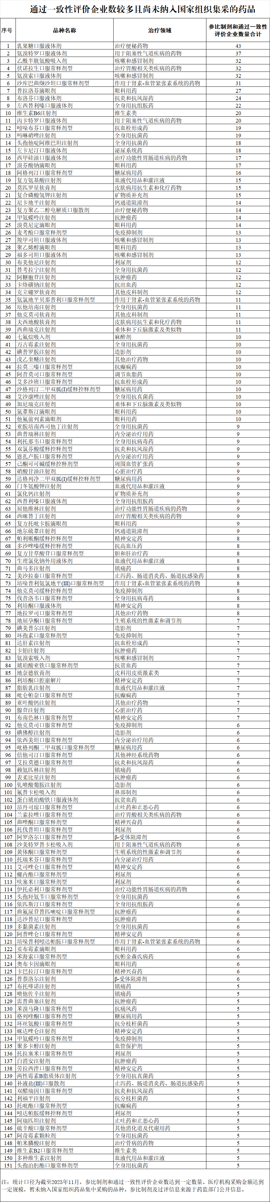 通过一致性评价企业数较多且尚未纳入国家组织集采的药品