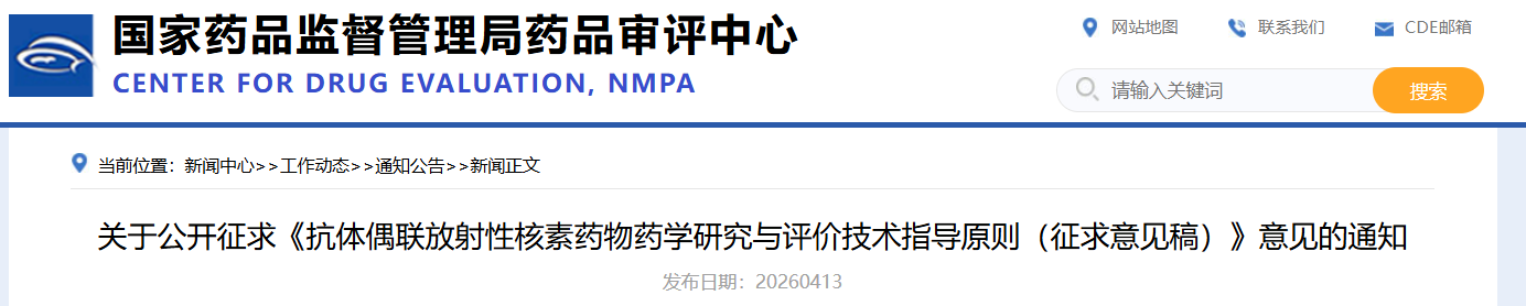 4 月 13 日,CDE 发布《抗体偶联放射性核素药物药学研究与评价技术指导原则(征求意见稿)》,以鼓励和促进抗体偶联放射性核素药物(ARC)的研发,征求意见时限为自发布之日起 1 个月。